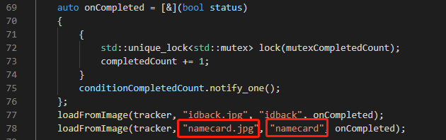 And the run the project, you will find ‘namecard.etd’ and ‘idback.etd’ files generated in the project directories. These two .etd files are the so-called Image Target Data.